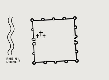 Nördlich der ehemaligen Pfarrkirche St. Urban lag der zugehörige Gemeindefriedhof. Bei den Ausgrabungen anlässlich des Baus des Rheinboulevards wurden zahlreiche Bestattungen des Mittelalters und der Neuzeit dokumentiert. Die ältesten nachgewiesenen steingefassten Gräber dürften aus dem 11. bis 12. Jahrhundert stammen.